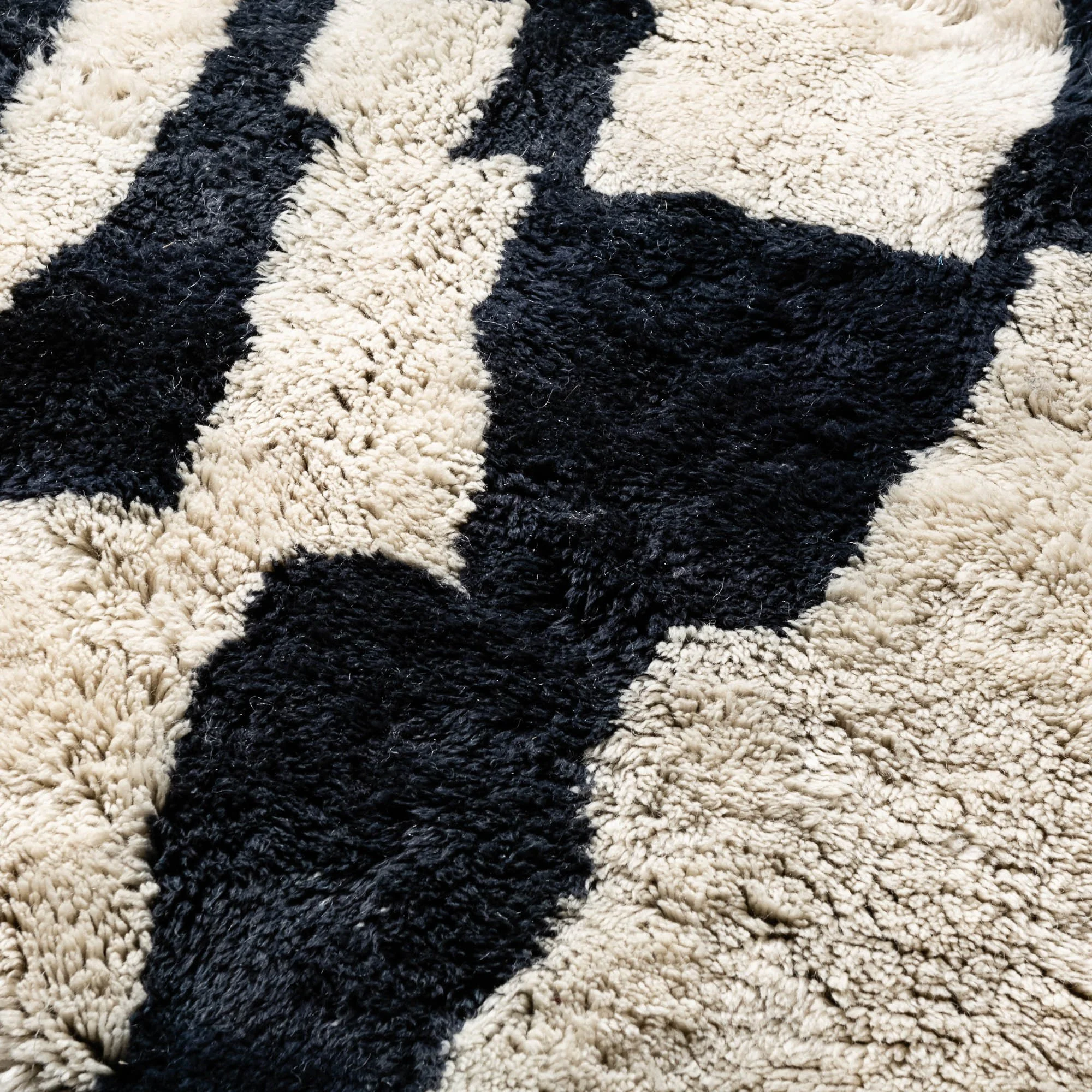 Our Blossom Rug is custom-made for you by exceptional artisans of the Beni Mrirt Tribe of Morocco. Handwoven using a luxurious blend of premium New Zealand wool and high-quality Moroccan wool, this innovatively refined combination offers unparalleled brilliance, superior softness, and lasting durability. A unique masterpiece for your interior, this rug is woven knot by knot, then bathed and air-dried under the serene Moroccan skies. Part of our Sojourner Rug Collection, each piece beautifully charts her journey to liberation.