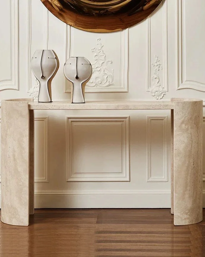 Ideal for an entryway the Mandela Natural Travertine Crescent Console Table features a crescent moon design that seamlessly flows with artisan-made circular lines. Crafted with high quality and durable 100% natural travertine, this piece features stone sourced from South Africa and other countries around the world. More than a console table, the Mandela Natural Travertine Crescent Console Table is an incredible work of art for your interior — a handcrafted stone sculpture that is sure to make a statement in your home for generations. Explore the complete Mandela Collection to finish the look.