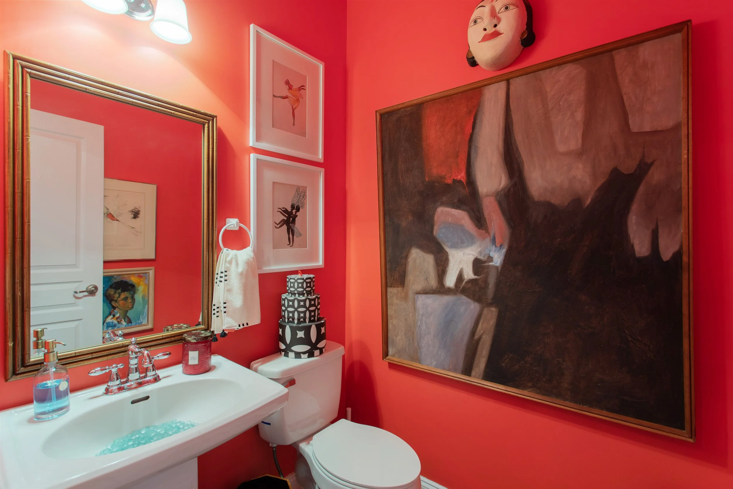 When asked about her favorite space in the home, Ariene was quick to answer: “Right now it’s my powder room.” And it’s all because of the color. “I’ve been dying to use this color for a project and decided to use it myself,” she confesses. Taking a cue from the painting she wanted to have in the space and a weekend to do the project herself, Ariene created this stunning powder room full of art, energy and fun.