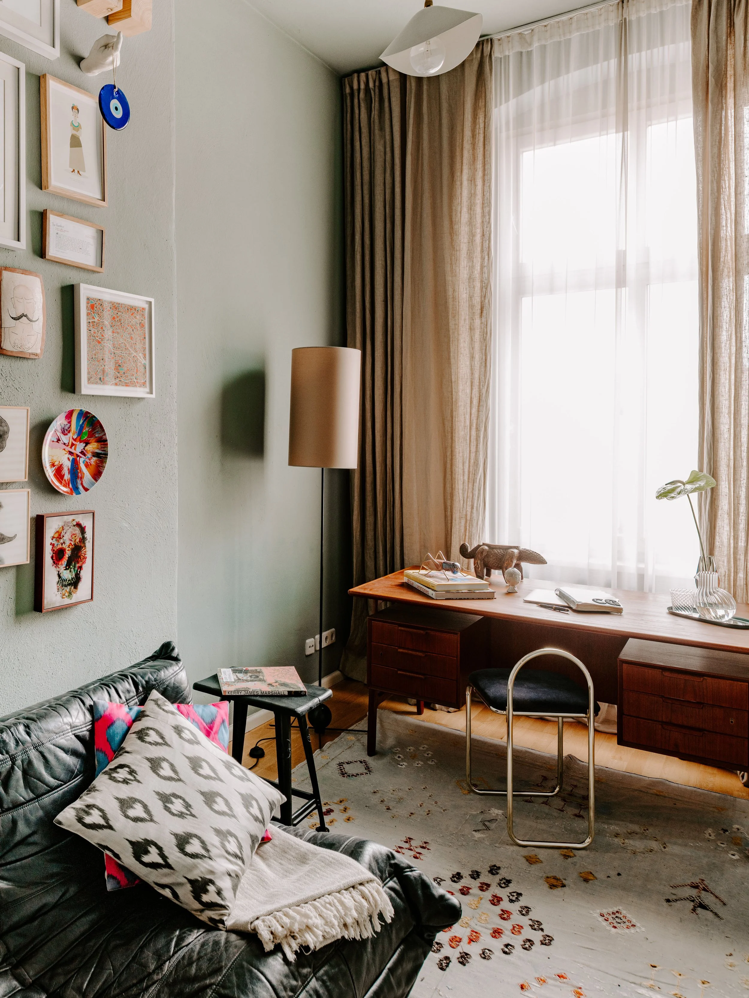 Chris’ home office is open and peaceful, the perfect space for hosting a friend for a few days. The seafoam-green wall and sand-colored curtains and rug evoke a vaguely beach-like atmosphere that feels effortless. It’s interesting then that Chris singles this space out as the hardest part of his initial redesign, explaining that “because the room is so compact, I struggled to create a layout that was functional, but still aesthetically pleasing.”
