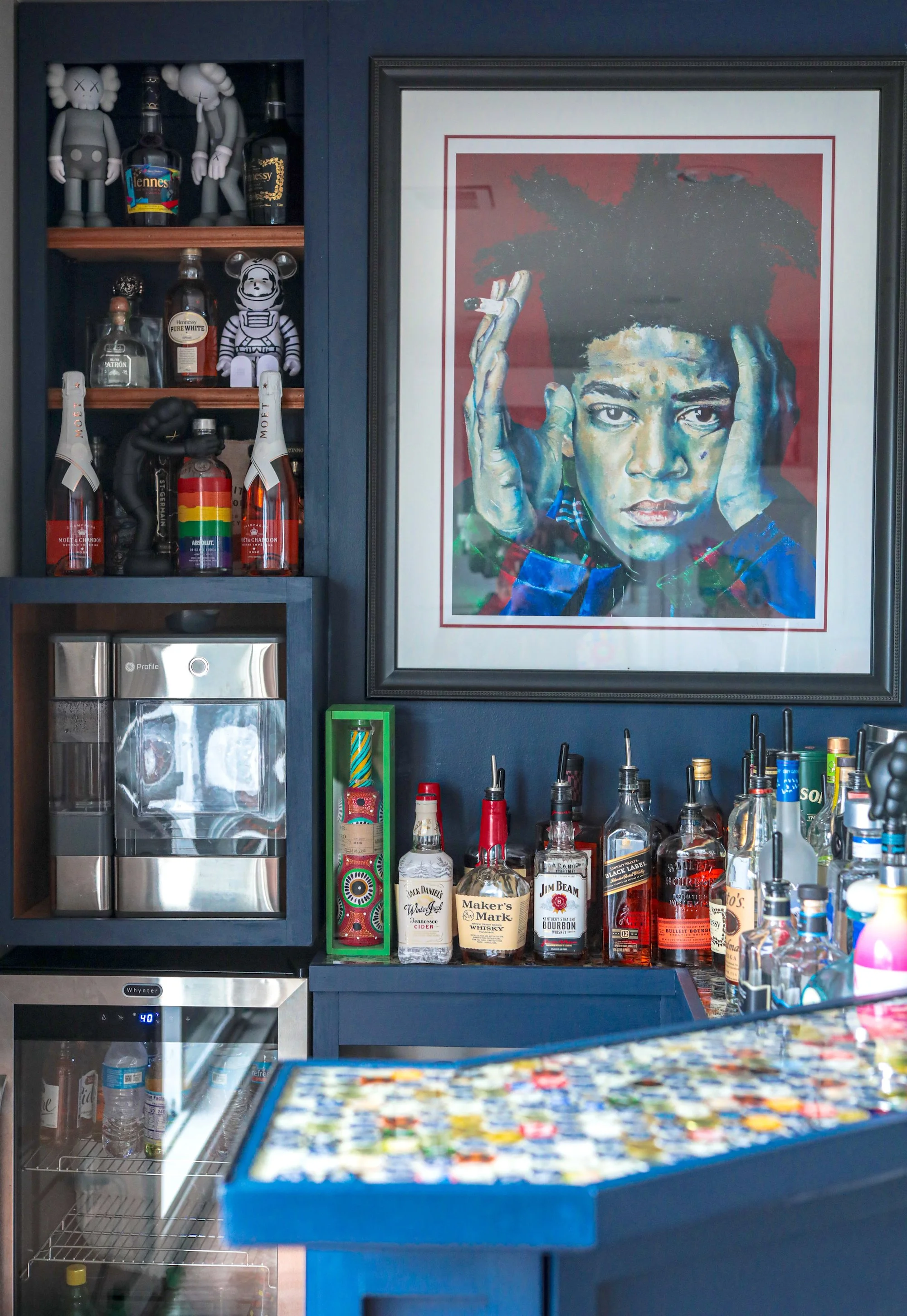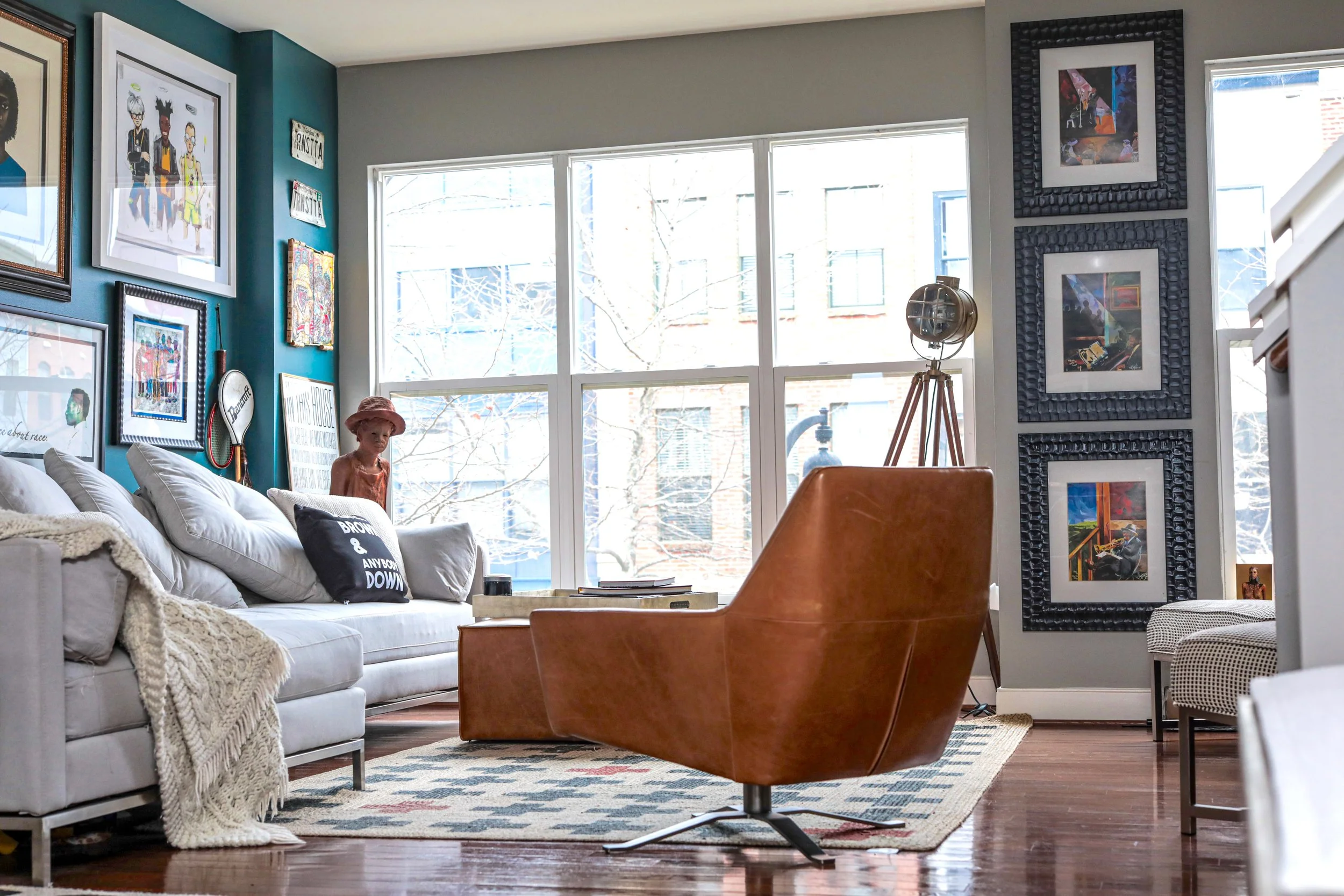 Rachel’s home was an undeniable find. Her four-level townhouse features four bedrooms, and each bedroom has its own private bathroom. It’s a dream for families and houseguests alike, but it wasn’t always a marvel. “I bought this house as-is, so the previous owner walked away without doing any repairs,” she recalls. The process of rehabilitation took years, and included everything from replacing faucets to building a bar. However, three years after taking over, Rachel feels the moment of completion is in sight. “I only have a few more spaces to hang paintings before I’m completely out of space,” she says.