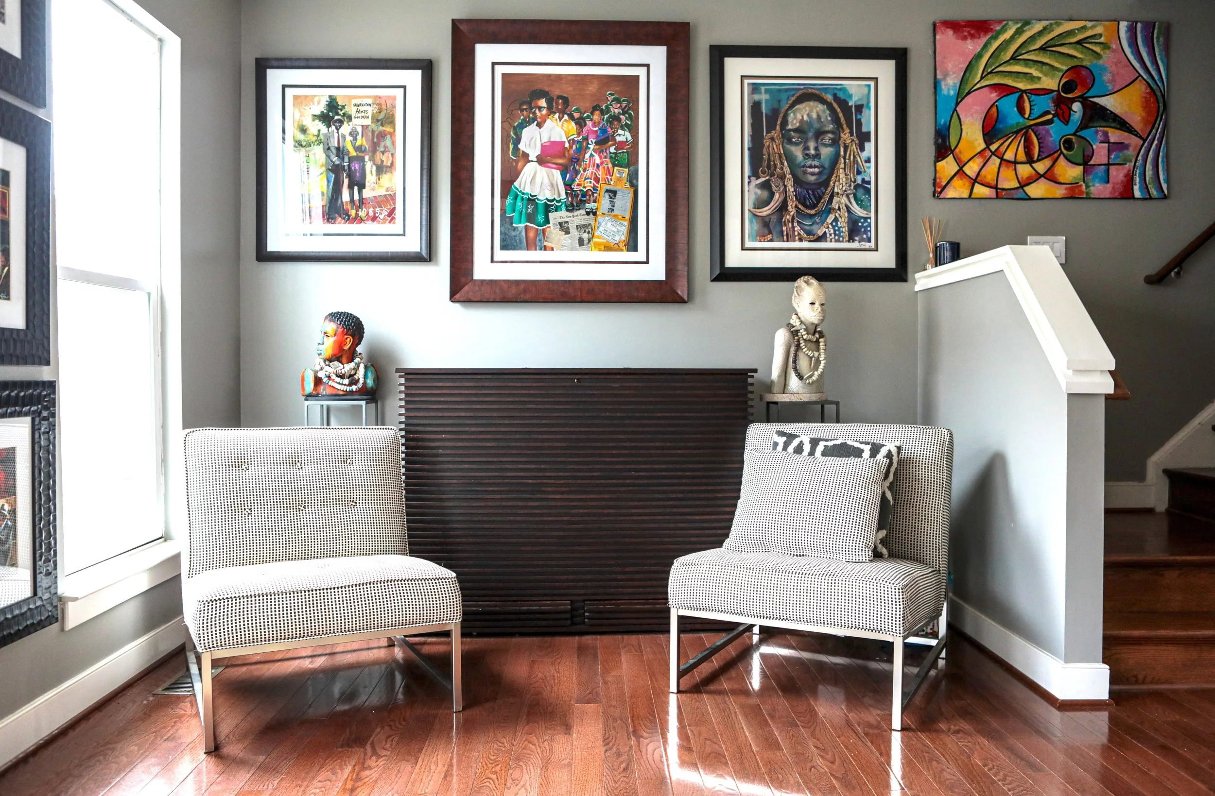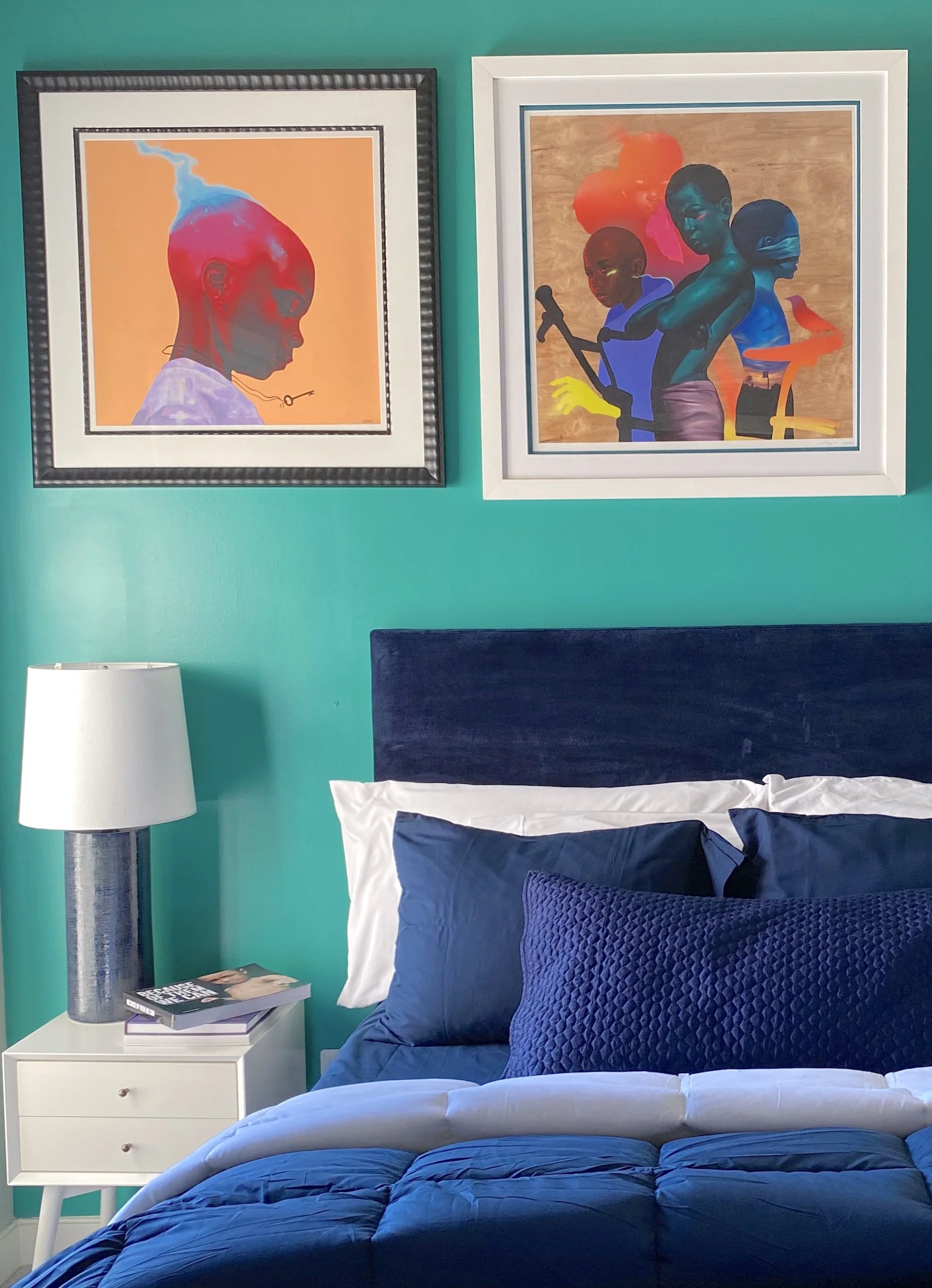 As definitive as painting is to Rachel’s life and her family, it’s no wonder that it plays such a large role in the design of her home. “My artwork defines my home,” she says. “Its the first thing you experience when you walk in. Every single wall has art on it - mostly Black art. I want to tell a story on every floor and in every room.”