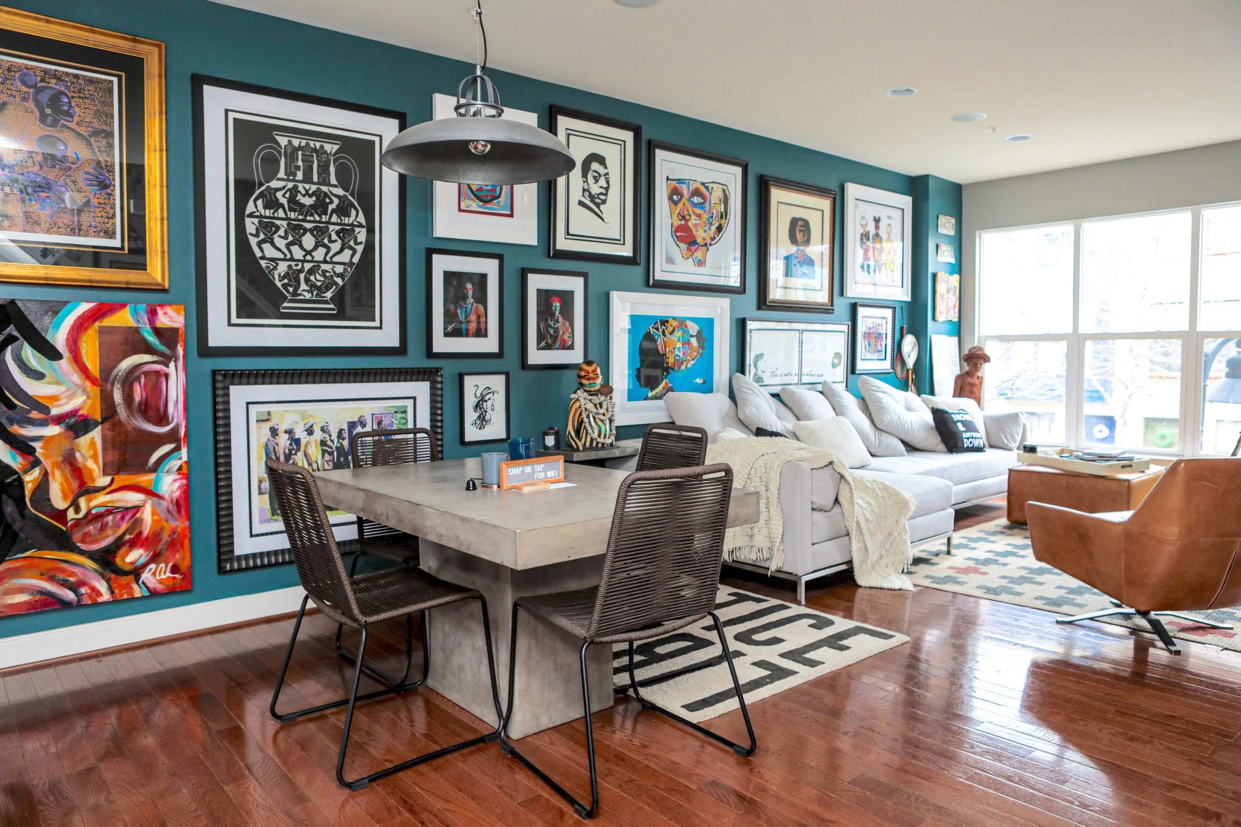 Educator by day, artist by night, Rachel Crouch has a unique style that shines through in her Hyattsville, Maryland home. As principal of a preparatory school, and owner - alongside her twin sister, Rebecca - of Signed Rachel & Rebecca, Rachel knows the importance of art in education and personal expression. Her four-story interior is part home, part gallery space, with an ever-growing collection of art that can be experienced in each and every room.